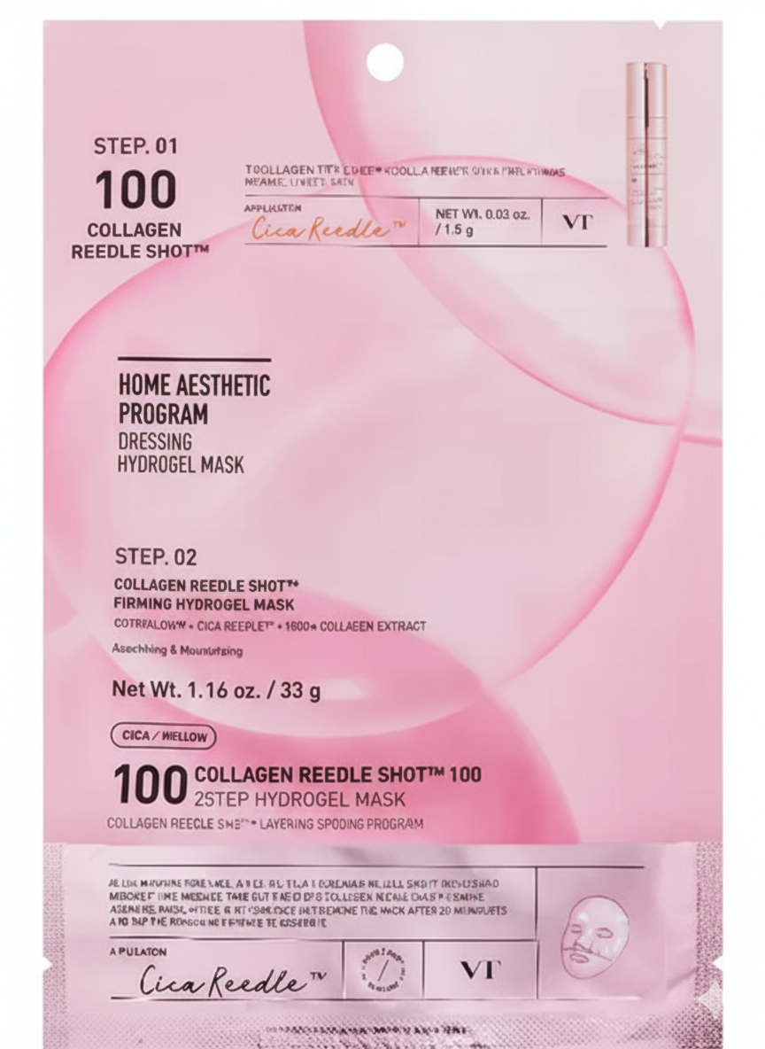 - Paso 1 – Reedle Shot 100: sérum concentrado con microagujas de colágeno solubles que penetran suavemente en la piel, mejorando la absorción de activos.